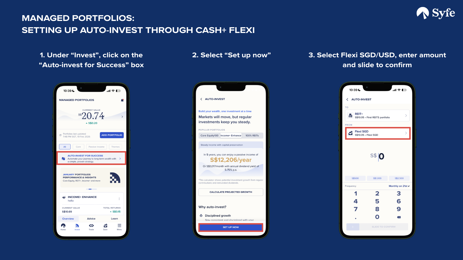 - You may refer to the visual guide below on how you can fund your Auto-Invest through your Cash+ Flexi portfolio: