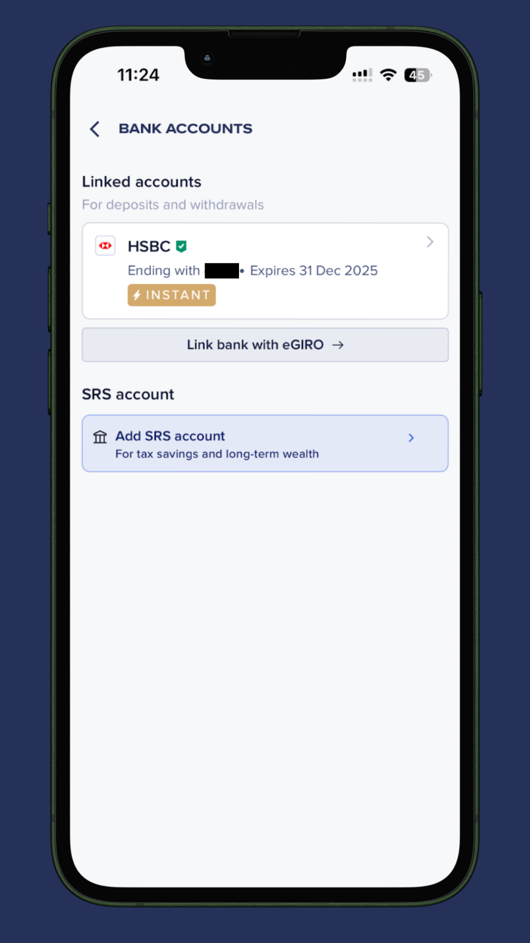 Yes, you can set up multiple eGIRO FAST bank accounts across all supported banks. You can do this via the “Add funds” page or from your “Bank Accounts” page.
