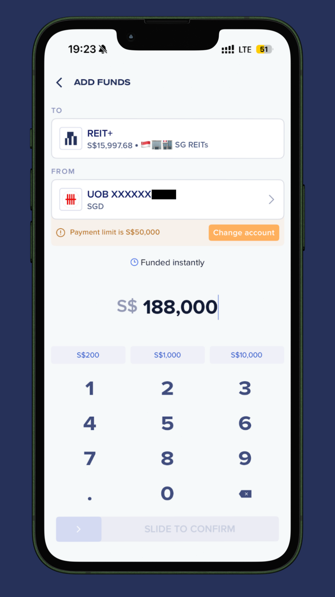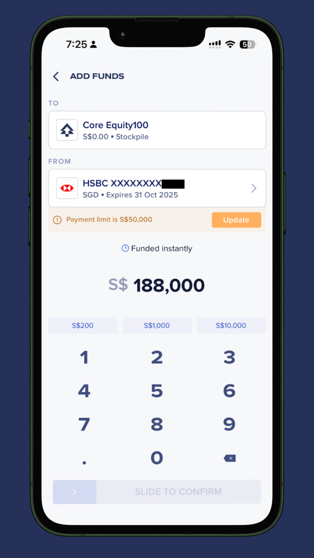 Easily update the expiry date or transfer limit of your eGIRO FAST direct debit directly in the app for a smooth and uninterrupted funding experience.